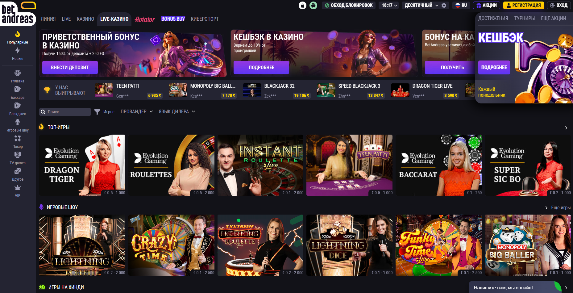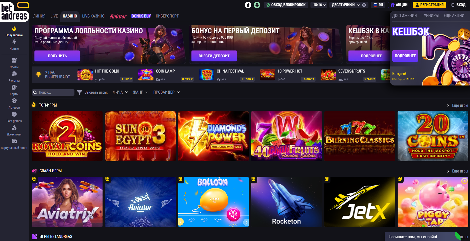 Обзор онлайн — казино BetAndreas (Бет Андреас)