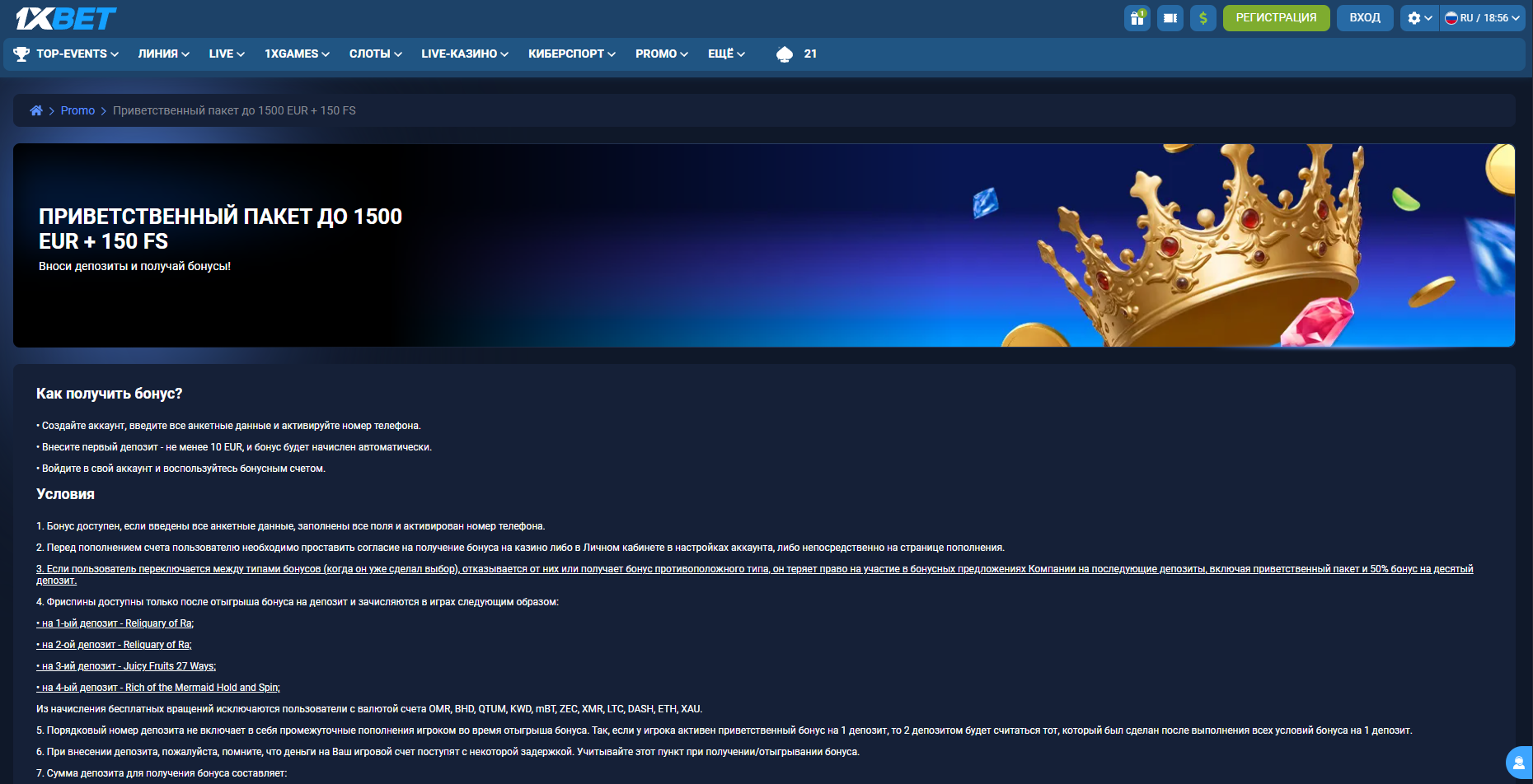 Бонус до 15 000 рублей и 150 фриспинов при регистрации по нашей ссылке! Ссылка на сайт 1xBet:
